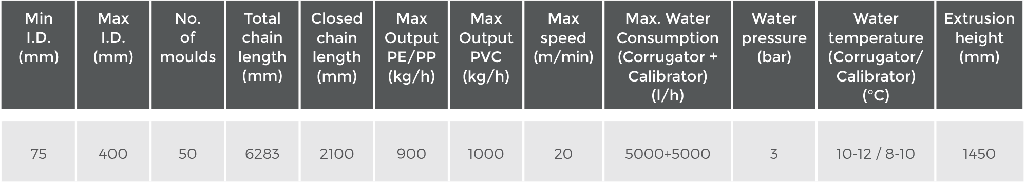 FV400+HP corrugator has the aim to bridge cable ducts and drainpipes, covering a wide range of sizes from 90mm OD up to 400mm ID.
